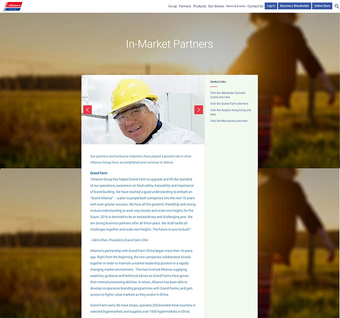 Alliance’s partnership with Grand Farm China began more than 16 years ago. Right from the beginning, the two companies collaborated closely together in order to maintain a market leadership position in a rapidly changing market environment.  This has involved Alliance supplying expertise, guidance and technical advice as Grand Farms have grown their internal processing abilities. In return, Alliance has been able to develop co-operative branding programmes with Grand Farms, and gain access to higher value markets as they evolve in China.